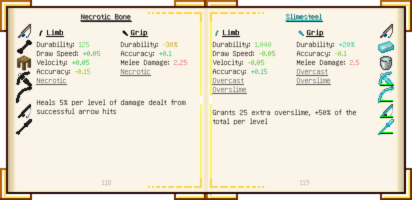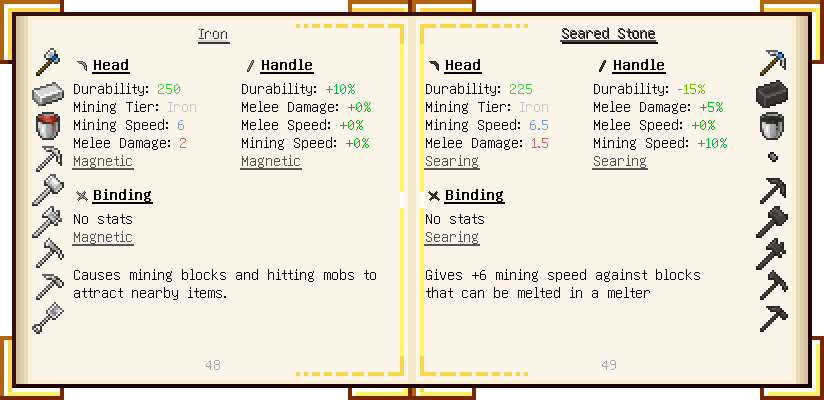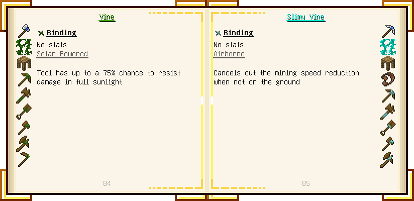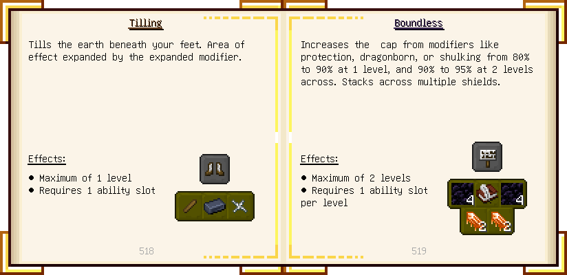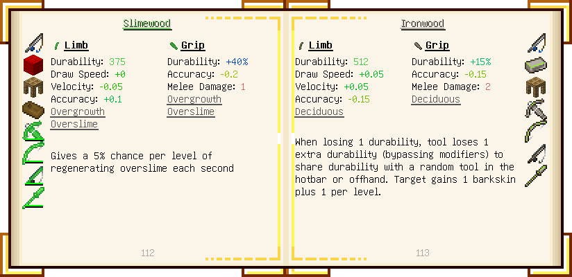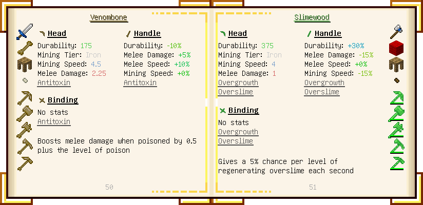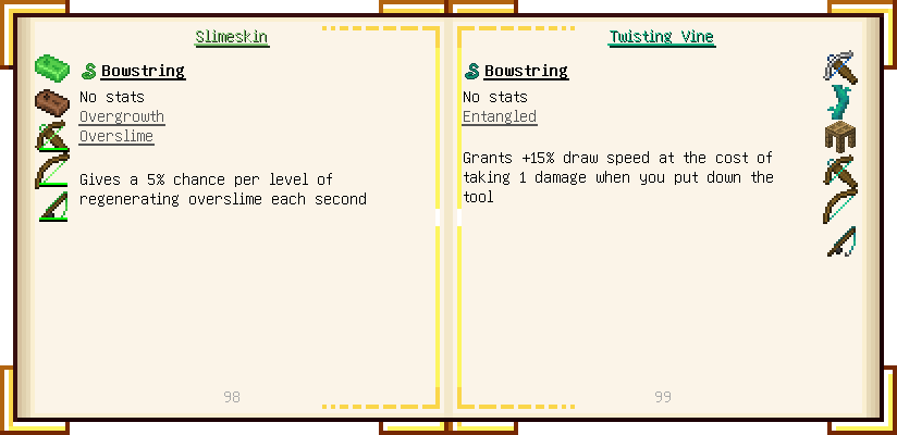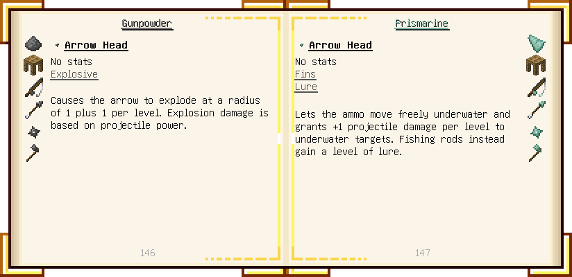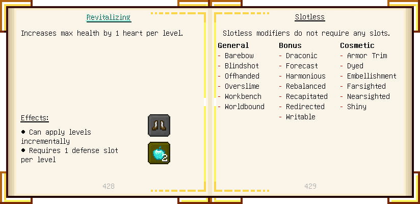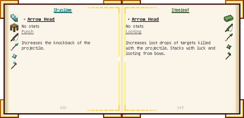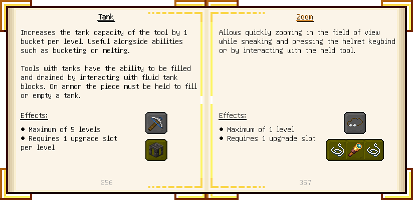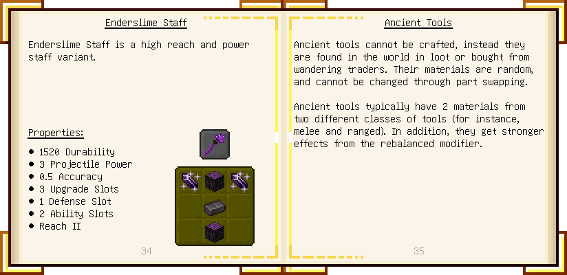 Home / Documentation / Book Index / 1.20 / Encyclopedia of Tinkering Encyclopedia of Tinkering (1.20) Tinkers' Gadgetry See below for images of all pages in Encyclopedia of Tinkering. Click a page to view in gallery mode. Tools General Materials Ranged Materials Ammo Materials Armor Armor Materials Slimeskulls Fluid Effects Upgrades Defense Slotless Abilities
