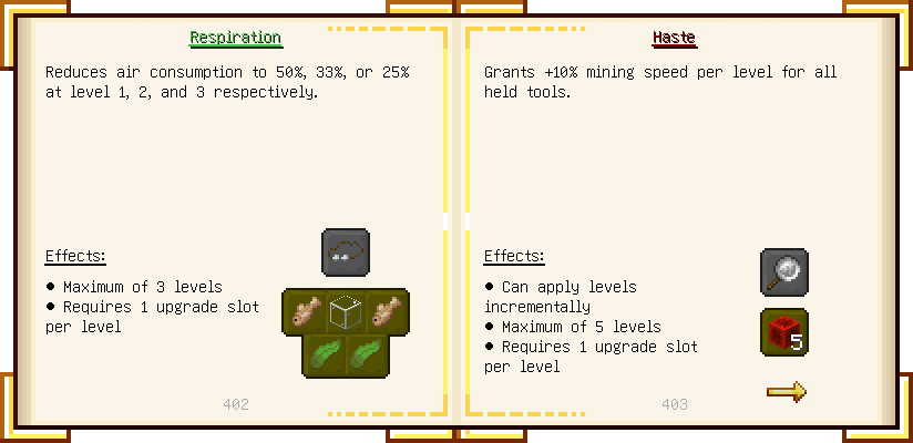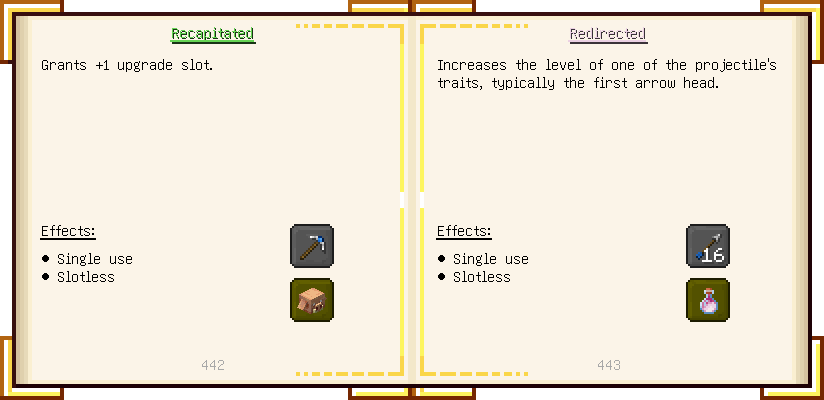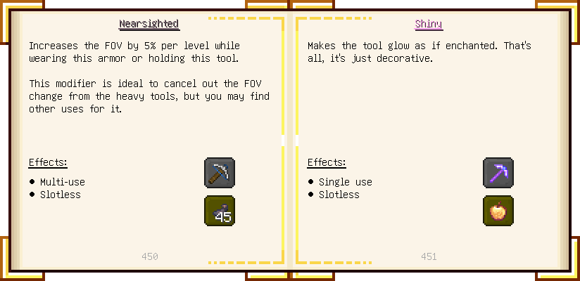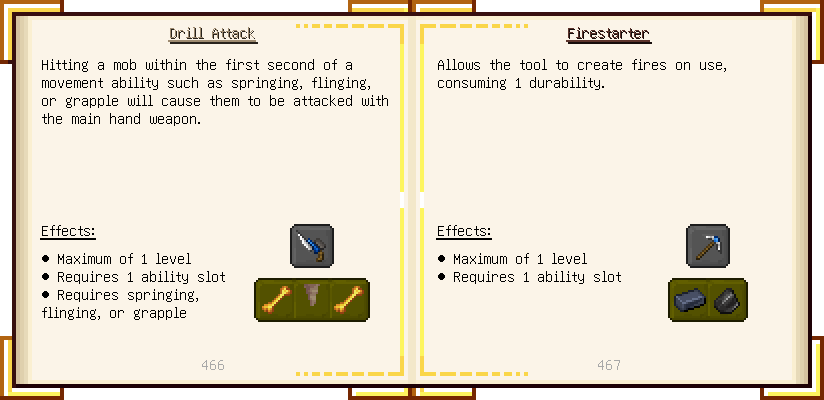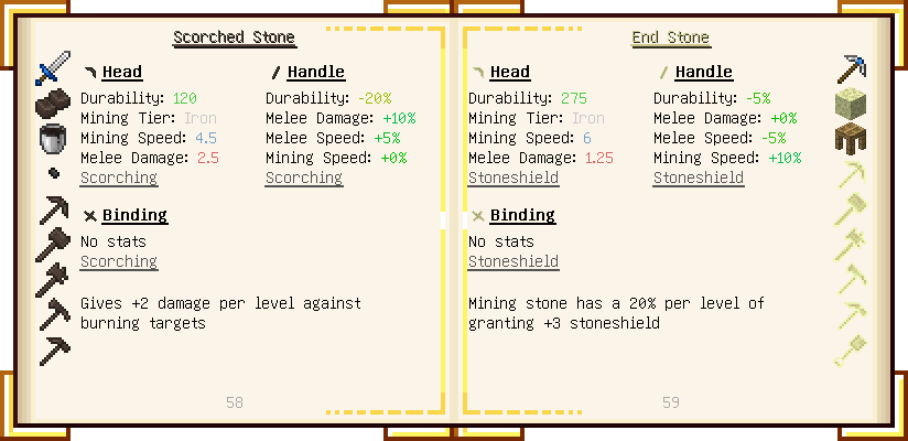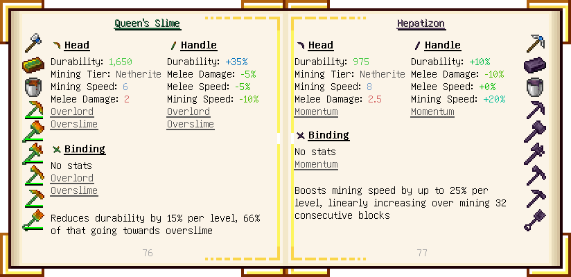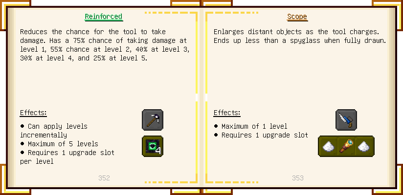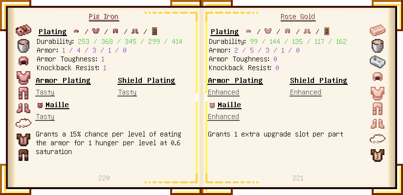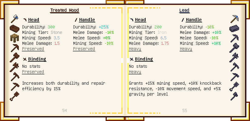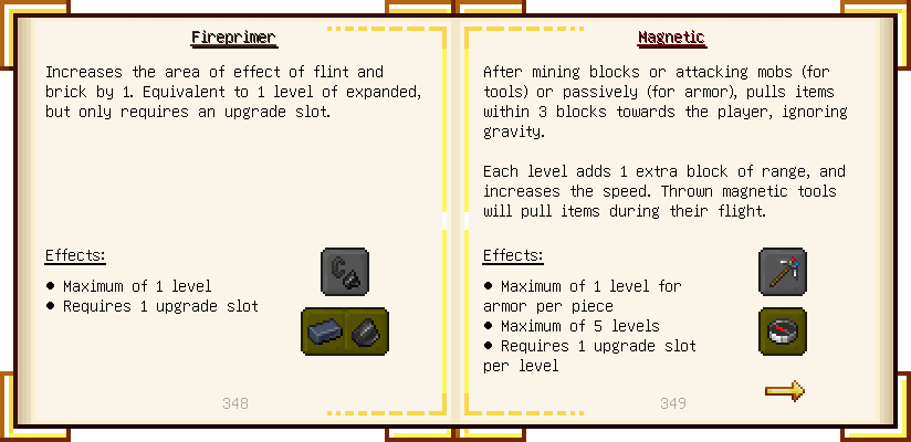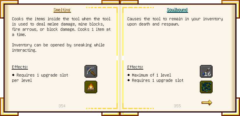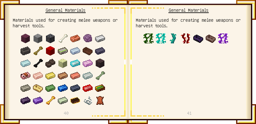 Home / Documentation / Book Index / 1.20 / Encyclopedia of Tinkering Encyclopedia of Tinkering (1.20) Tinkers' Gadgetry See below for images of all pages in Encyclopedia of Tinkering. Click a page to view in gallery mode. Tools General Materials Ranged Materials Ammo Materials Armor Armor Materials Slimeskulls Fluid Effects Upgrades Defense Slotless Abilities