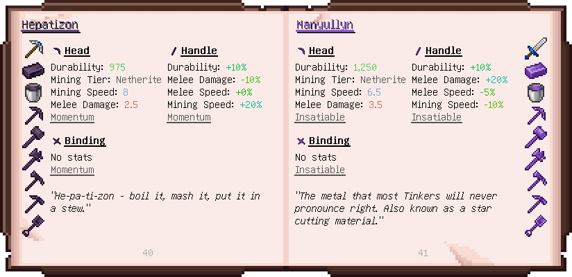 Home / Documentation / Book Index / 1.20 / Fantastic Foundry Fantastic Foundry (1.20) Mighty Smelting Tinkers' Gadgetry See below for images of all pages in Fantastic Foundry. Click a page to view in gallery mode. Alloyer Foundry Blazing Blood Tier 4 General Tier 4 Ranged Tier 4 Armor