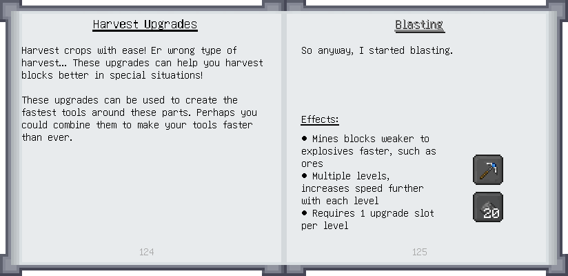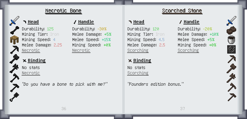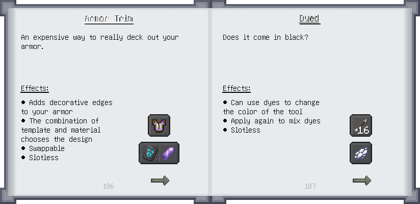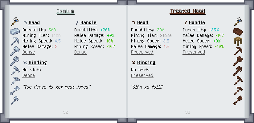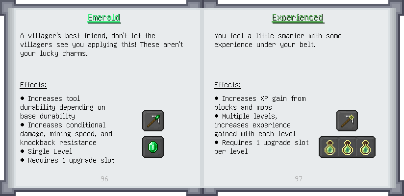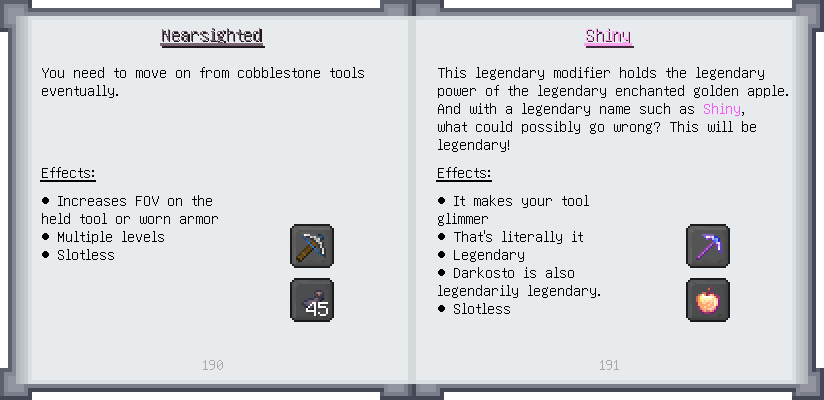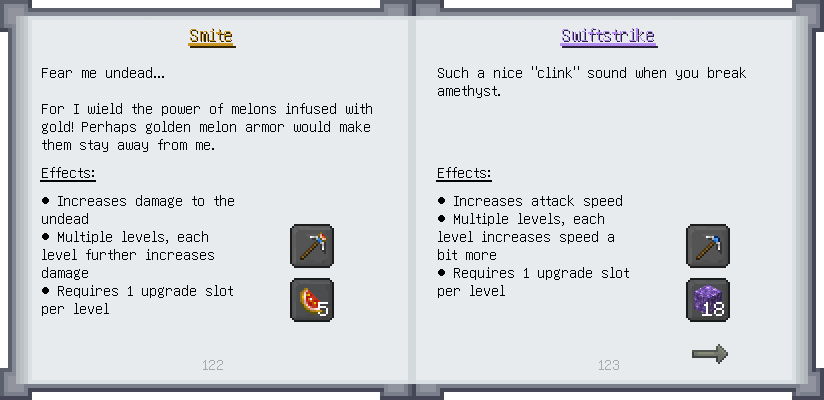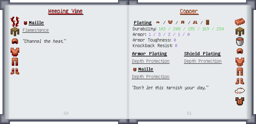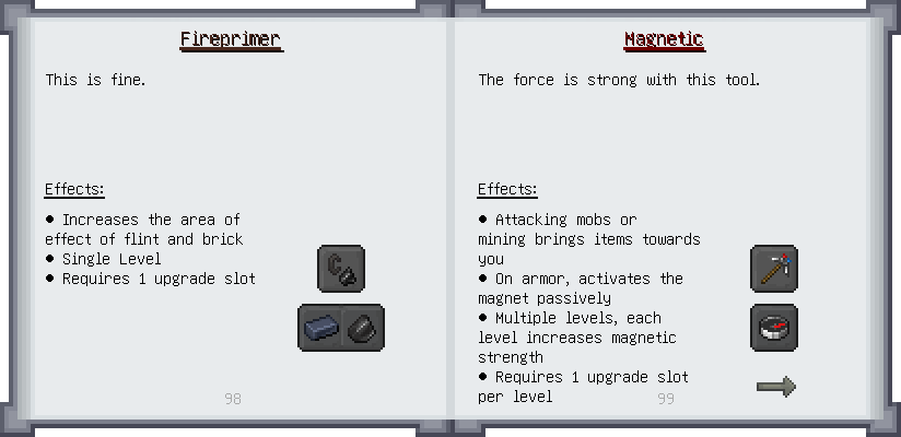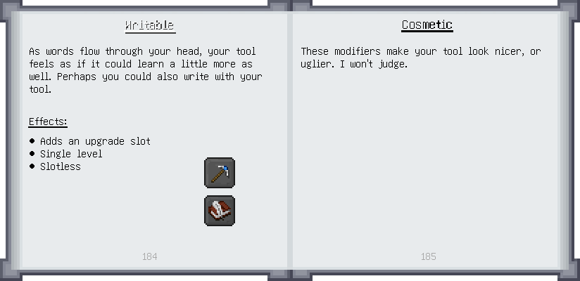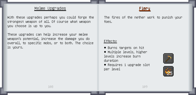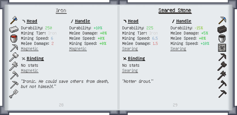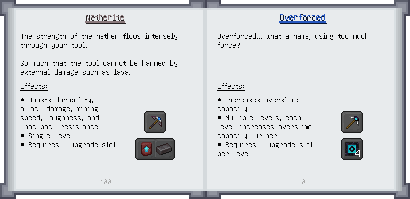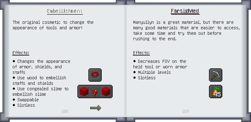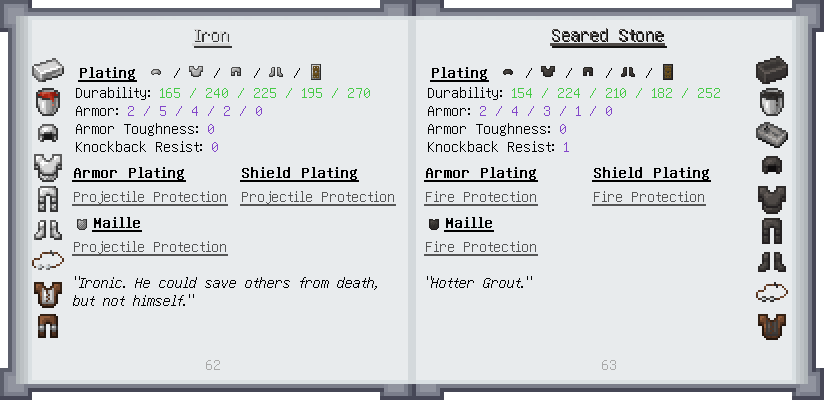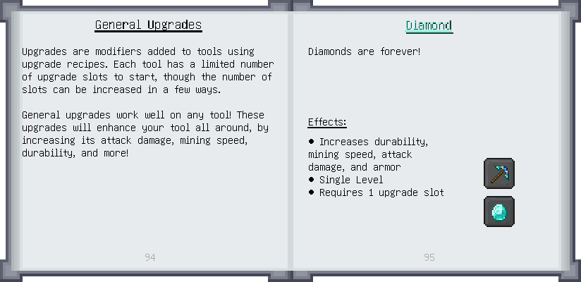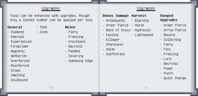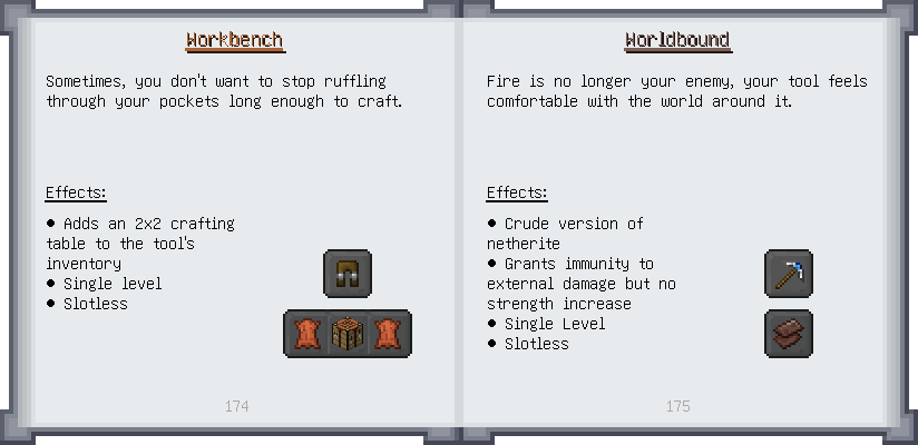 Home / Documentation / Book Index / 1.20 / Puny Smelting Puny Smelting (1.20) Materials and You Mighty Smelting See below for images of all pages in Puny Smelting. Click a page to view in gallery mode. Table of Contents Melter & Moving Fluids Casting Tier 2 General Tier 2 Ranged Tier 2 Armor Puny Armor Upgrades Slotless Modifiers Modifier Worktable Further Reading Melter & Moving Fluids Casting Tier 2 General Tier 2 Ranged Tier 2 Armor Puny Armor Upgrades Slotless Modifiers Modifier Worktable Further Reading