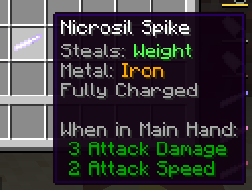 Nicrosil spikes also have an improved texture, which shows a bit of the metal it stole. While thematically the spike would be all nicrosil, this is just better for gameplay. Nicrosil metalminds already do the same thing with the color of the power bar.